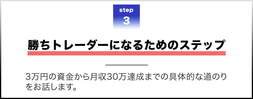 これに参加することで、シンプルトレードを学ぶ道筋がわかり、最短距離で月収30万円を達成する姿が具体的に見えます。